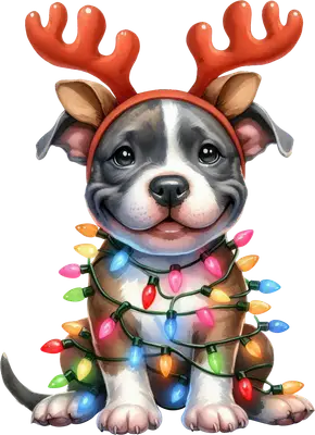 Adorable Christmas Puppy Reindeer Antlers DTF Transfer