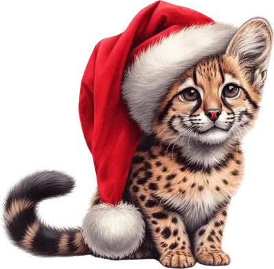 Adorable Christmas Wild Cat Kitten DTF Transfer Santa Hat
