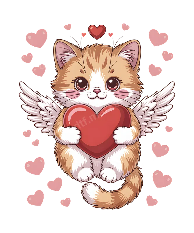 Adorable Cupid Cat with Heart DTF Transfer - Ready to Press Kitty Love