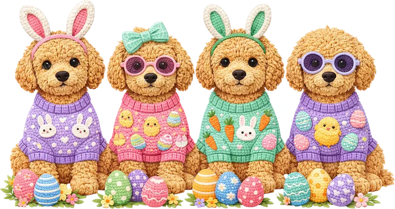 Adorable Easter Puppy DTF Transfer | Cute Dogs in Spring Sweaters