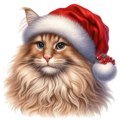 Adorable Fluffy Cat Santa Hat DTF Transfer | Ready to Press Christmas Design