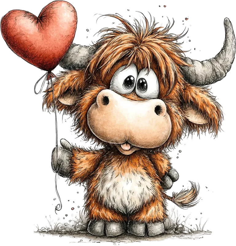 Adorable Fluffy Highland Cow Heart Balloon DTF Transfer