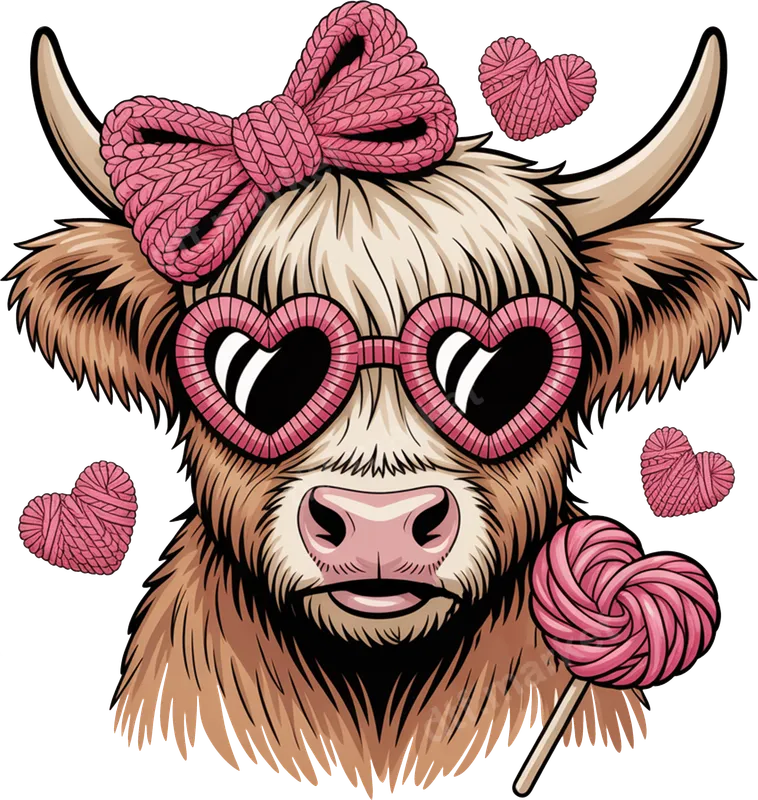See allThis charming DTF transfer features an irresistibly cute Highland cow, making it a perfect ready to press design for adding personality to any garment. The adorable bovine sports stylish pink heart-shaped sunglasses and a matching knitted bow on its head, exuding a sweet and lovable vibe. Completing the look, the cow holds a whimsical heart-shaped lollipop, surrounded by floating pink yarn hearts, creating a truly delightful and eye-catching image. This premium heat transfer is meticulously crafted to bring vibrant life to your apparel with minimal effort. Ideal for cow enthusiasts, animal lovers, and anyone who appreciates a touch of rustic charm mixed with undeniable cuteness. This iron on decal is perfect for Valentine's Day celebrations, Mother's Day gifts, or simply to express your affection year-round. It's a fantastic choice for crafters, small business owners, or individuals looking to create unique gifts for friends, family, or partners. Imagine this design on matching shirts for a girls' trip or as a thoughtful present for a favorite teacher. Applying this design is incredibly simple, making it a hassle-free heat press transfer experience. Our ready to press transfers are compatible with a wide range of fabrics, including 100% cotton, 100% polyester, and various cotton/poly blends. For best results, use a heat press at 300-325°F for 15 seconds with medium pressure. Even if you don't have a professional heat press, a household iron can be used with firm, even pressure. Enjoy the convenience of a "no weeding" design, saving you time and effort compared to traditional vinyl transfers. Experience superior quality with our durable DTF transfers. Each t-shirt transfer boasts vibrant colors, sharp details, and excellent wash durability, ensuring your design remains striking for years to come without cracking or peeling. The special film and strong adhesive create a soft, flexible finish that integrates beautifully with the fabric, providing a comfortable feel that isn't stiff or heavy. Choose dtf.market for professional-grade apparel transfers that elevate your custom creations.