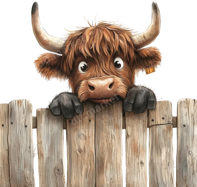 Adorable Highland Cow Peeking Over Fence DTF Transfer