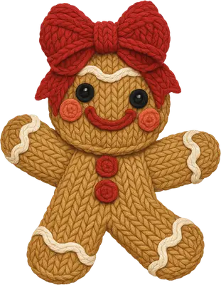 Adorable Knitted Gingerbread Girl DTF Transfer | Cute Christmas Cookie Iron On Design