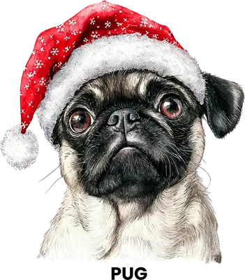 Adorable Pug in Santa Hat DTF Transfer - Christmas Dog Heat Press Ready