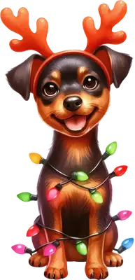 Adorable Reindeer Puppy Christmas Lights DTF Transfer