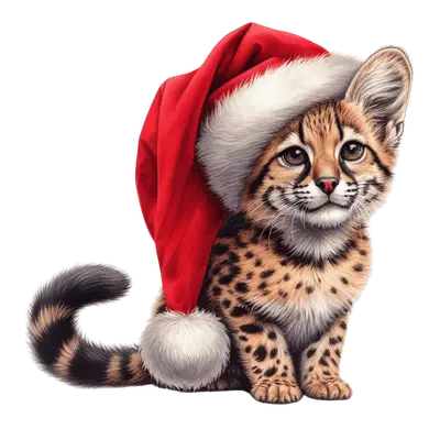 Adorable Spotted Cat Kitten in Santa Hat Christmas DTF Transfer