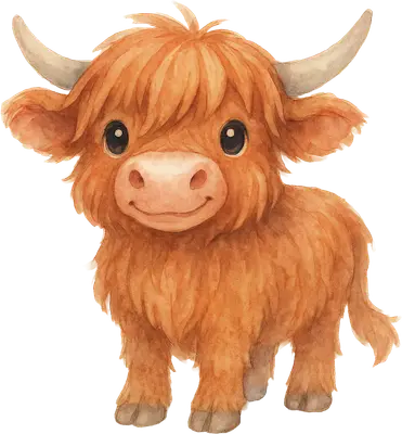 Adorable Watercolor Baby Highland Cow DTF Transfer