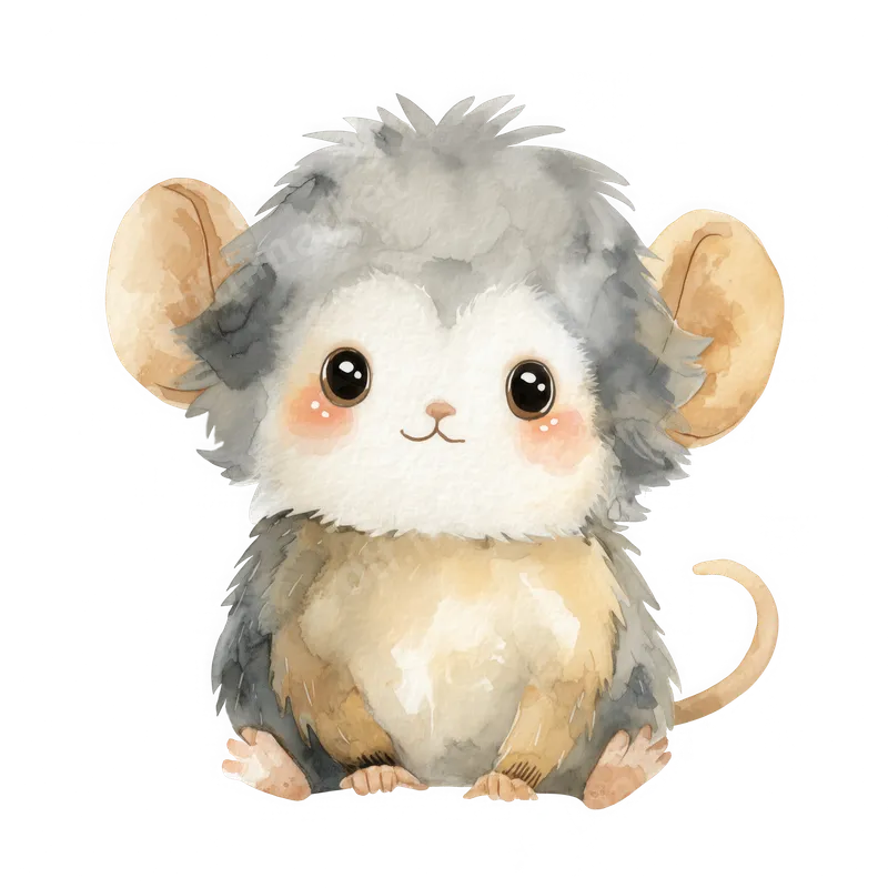 Adorable Watercolor Chibi Mouse DTF Transfer | Ready to Press