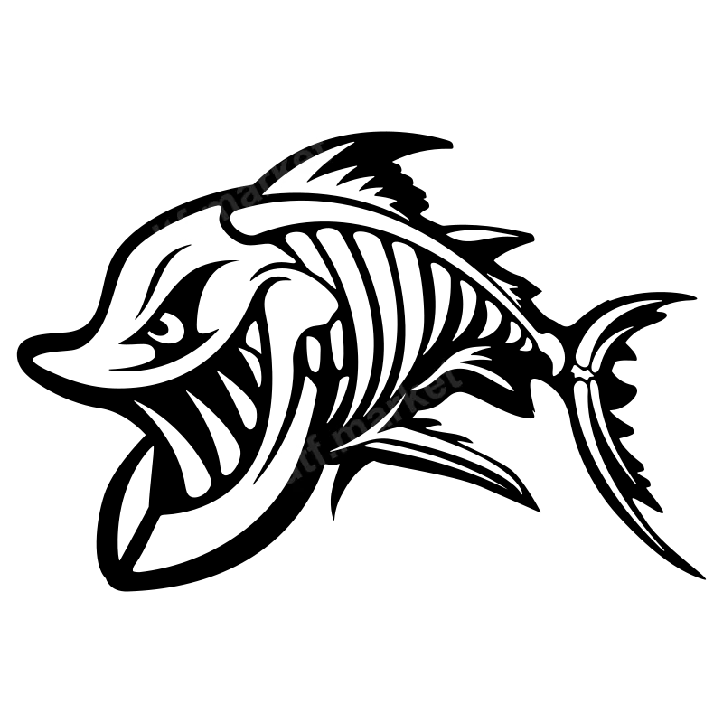 Aggressive Skeletal Fish DTF Transfer | Ready to Press Design