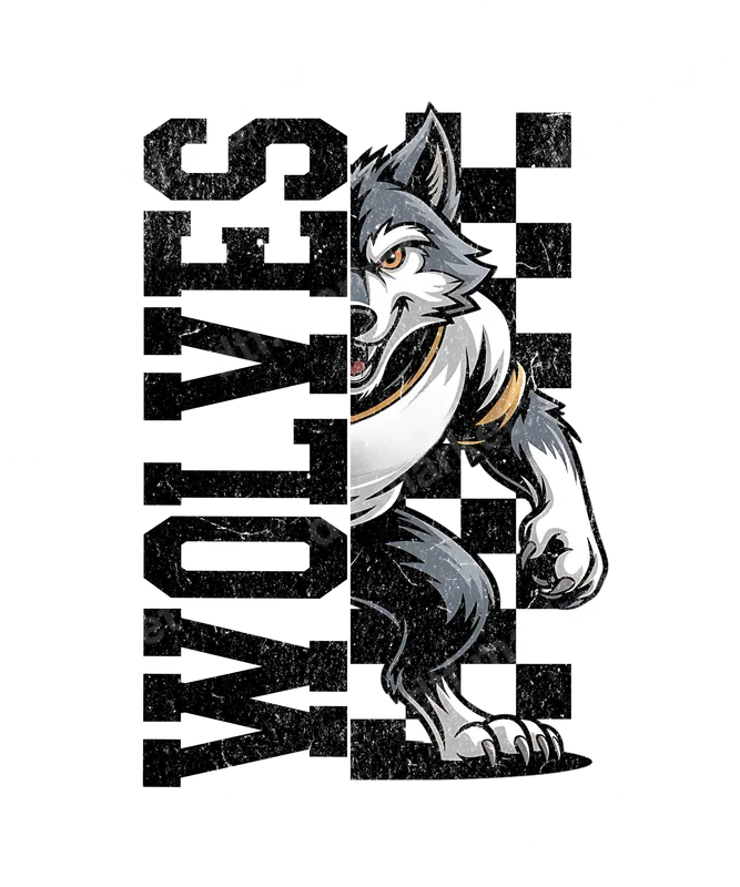 See allUnleash your inner beast with this striking DTF transfer featuring an aggressive wolf mascot. The design showcases a powerful, snarling wolf with piercing orange eyes, split down the middle with bold, distressed 'WOLVES' typography. A subtle checkerboard pattern adds a dynamic, edgy backdrop, giving this ready to press design a fierce and determined vibe. It's perfect for anyone looking to convey strength, loyalty, or team spirit with a distinct grunge aesthetic. This commanding iron on transfer is ideal for a diverse range of enthusiasts and small businesses. It's a fantastic choice for sports teams, school clubs, and athletic booster organizations looking to create custom team apparel. Wolf lovers, wildlife advocates, and those with a connection to Nordic or wilderness themes will also appreciate its bold presence. Small t-shirt businesses and crafters will find this heat transfer design a powerful addition to their inventory, perfect for creating unique gifts for birthdays, holidays, or special events like team championships and rallies. Applying this vibrant heat press transfer is a breeze, suitable for a wide range of fabrics including cotton, polyester, cotton-poly blends, and even nylon. Achieve professional results with a heat press (300-325°F for 15 seconds at medium pressure) or a household iron. No tedious weeding or layering is required—simply peel and press! It's perfect for customizing t-shirts, hoodies, sweatshirts, tote bags, and denim jackets. For lasting durability, wash garments inside out and tumble dry on low heat. Experience superior quality with this ready to press transfer, featuring vibrant, full-color printing and exceptional fine detail. The design boasts crack-resistant flexibility and a soft, lightweight feel, unlike heavy vinyl alternatives. Each direct to film transfer is meticulously printed on premium DTF film, engineered with a strong adhesive backing to ensure professional, long-lasting results that impress every time. Elevate your apparel with a transfer that truly stands out.