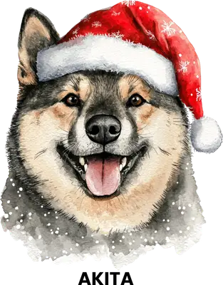 Akita Christmas Dog DTF Transfer | Santa Hat Watercolor Design