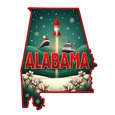 Alabama Christmas State Outline DTF Transfer | Rocket & Cotton