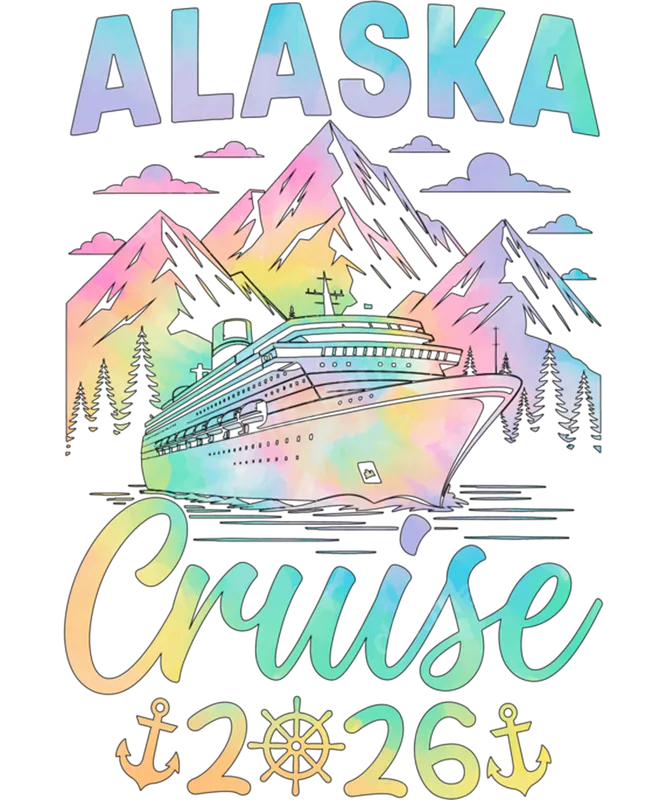 Alaska Cruise 2026 Watercolor Ship Mountains DTF Transfer