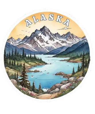 Alaska Mountains Lake Watercolor DTF Transfer | Nature Ready to Press