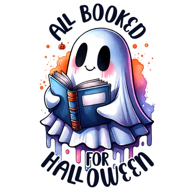 All Booked for Halloween Ghost DTF Transfer - Cute Book Lover Tee