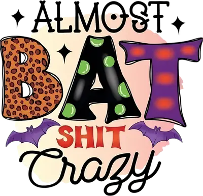 Almost Bat Shit Crazy Halloween DTF Transfer Funny Spooky