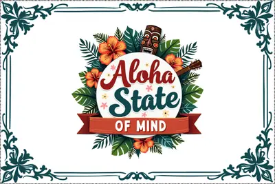 Aloha State Of Mind Tropical Hawaiian DTF Transfer with Tiki Mask & Ukulele