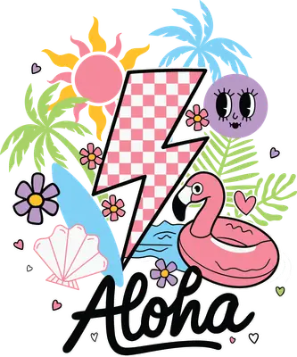Aloha Summer Vibes DTF Transfer - Lightning Bolt & Flamingo