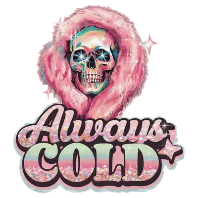 Always Cold Pink Fur Skull Glitter DTF Transfer | Trendy Heat Press Design