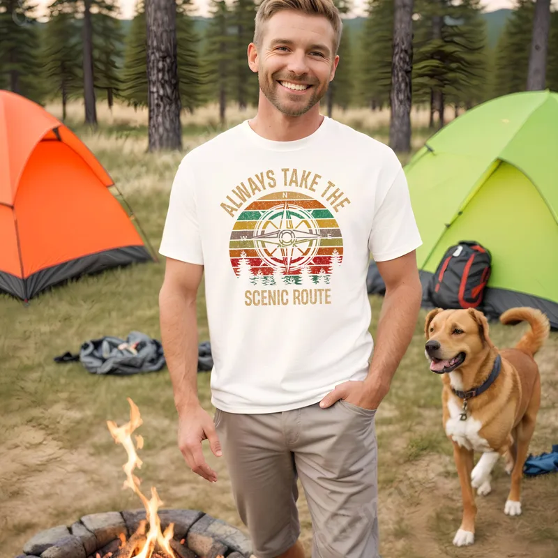 Always Take The Scenic Route Compass DTF Transfer Retro Camping Design