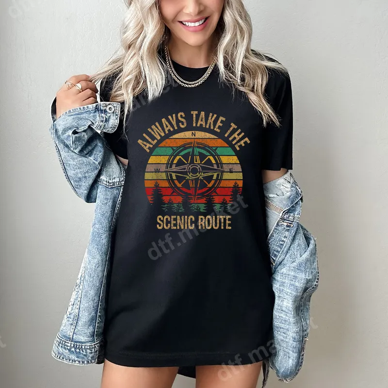 Always Take The Scenic Route Compass Retro DTF Transfer