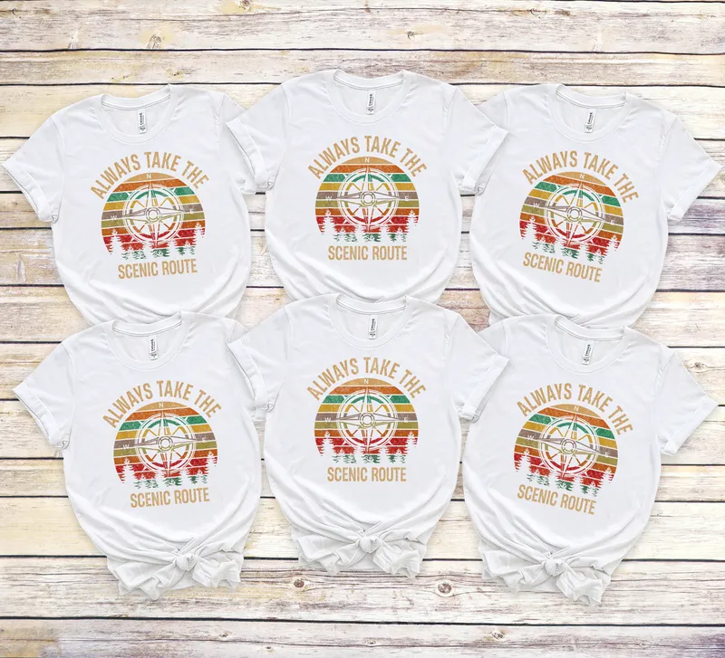 See allDiscover your next adventure with this captivating "Always Take The Scenic Route" DTF transfer. Featuring a vintage-inspired compass set against distressed horizontal stripes and a row of classic pine trees, this design evokes a love for exploration and the great outdoors. This direct to film transfer is a perfect ready to press design for anyone who prefers the path less traveled, celebrating the beauty of nature and the journey itself. This heat press transfer is ideal for hikers, campers, road trippers, and nature enthusiasts looking to express their passion for adventure. It's an excellent choice for custom apparel for family vacations, camping trips, hiking adventures, or as a thoughtful gift for Father's Day, birthdays, or any occasion that calls for a touch of wanderlust. Create matching shirts for your travel crew or personalize a gift for that special someone who always takes the scenic route. Applying this transfer is effortless and compatible with a wide range of fabrics, including cotton, polyester, and their blends. For best results, use a heat press at 300-325°F for 15 seconds with medium pressure, then perform a cool peel. While a professional heat press is recommended for optimal adhesion and longevity, this iron on decal can also be applied with a household iron with careful technique. No weeding or intricate layering is required, making customization quick and simple. Each professional quality t-shirt transfer is meticulously printed on durable DTF film, ensuring vibrant colors and a soft, smooth finish that's crack-resistant. Our apparel transfer designs are crafted to withstand numerous washes, maintaining their integrity and bold look. This high-quality ready to press transfer guarantees a professional outcome every time, allowing you to create stunning, personalized items with ease.