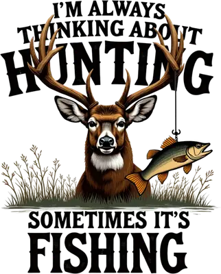 Always Thinking Hunting Fishing DTF Transfer - Deer Buck & Fish Design