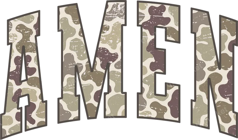 See allThis striking AMEN DTF transfer features bold, block letters filled with a rugged, distressed camouflage pattern in muted earth tones. The classic camo design adds a vintage and strong aesthetic to the powerful faith message. This premium direct to film transfer is ready to press, allowing you to quickly customize your favorite apparel with a durable and stylish design. It’s perfect for expressing your belief with a subtle yet impactful visual. This versatile heat press design is ideal for anyone looking to showcase their faith, including Christian individuals, church group members, military families, or veterans who appreciate its unique style. It makes a thoughtful gift for spiritual milestones, patriotic holidays, or simply as an everyday statement of devotion. Create custom t-shirts for youth groups, hoodies for family reunions, or unique accessories that reflect personal values. Applying your new AMEN iron on transfer is simple and efficient. For best results, use a heat press at 300-325°F for 15 seconds with medium, firm pressure. This ready to press transfer works beautifully on a wide variety of fabrics, including cotton, polyester, and blends. A household iron can also be used with careful application. Enjoy the convenience of no weeding or layering required, making customization a breeze. Experience the superior quality of our professional DTF film. This t-shirt transfer boasts vibrant, crisp colors and exceptional detail, ensuring your design looks fantastic and lasts wash after wash without cracking or peeling. The strong adhesive provides a soft, flexible feel, making the design comfortable to wear. Elevate your wardrobe with a meaningful and long-lasting heat press design that stands out.