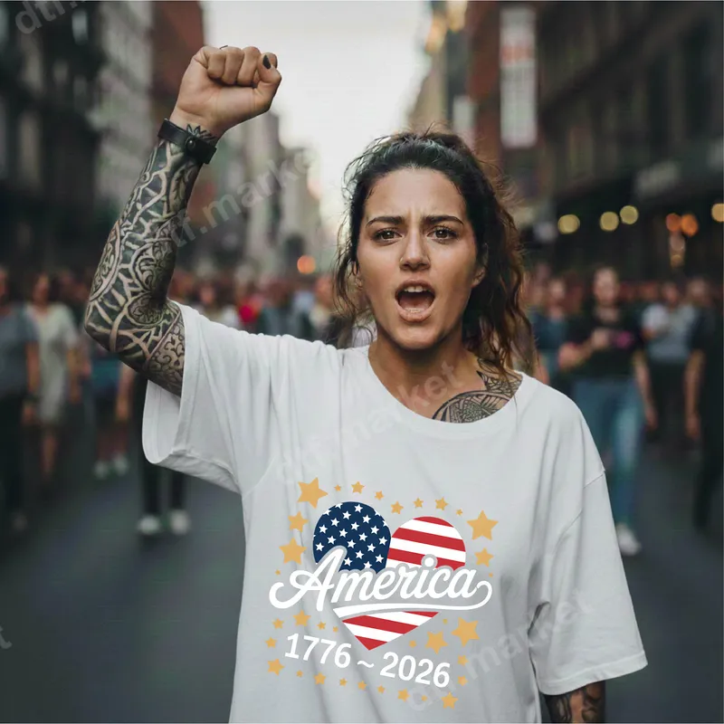 See allCelebrate American heritage and the upcoming 250th anniversary with this vibrant "America 1776 ~ 2026" DTF transfer. This design proudly features two hearts, one adorned with the stars and the other with the stripes of the American flag, surrounded by a scattering of cheerful golden stars. It's a powerful and celebratory heat press ready design, perfect for expressing your national pride. This patriotic direct to film transfer is ideal for anyone who loves their country, from proud Americans and history enthusiasts to veterans and their families. It makes an excellent statement for Fourth of July celebrations, Memorial Day events, Veterans Day tributes, or any occasion where you want to showcase your love for the USA. It's also a thoughtful gift for friends and family who cherish American history and freedom. Applying this professional-grade heat transfer is simple and efficient. It adheres beautifully to a wide range of materials, including cotton, polyester, and various fabric blends. For best results, use a heat press at 300-325°F for 15 seconds with medium pressure, then peel cold. A household iron can also be used following specific instructions. Enjoy the convenience of a ready to press transfer with no tedious weeding required. Our high-quality DTF transfers are crafted to deliver stunning results. Expect incredibly vibrant colors that pop, superior durability that resists cracking and fading, and a soft-to-touch finish that feels great on any garment. This iron on transfer uses premium film and strong adhesive, ensuring your custom shirt design stands out and lasts wash after wash.