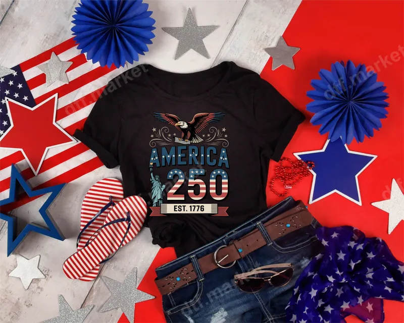See allThis vibrant patriotic DTF transfer celebrates 250 years of American spirit with a bold design. Featuring a majestic bald eagle soaring above "AMERICA 250" in classic red, white, and blue, alongside the iconic Statue of Liberty and "EST. 1776." This detailed graphic captures the essence of national pride and heritage. It's a premium, ready to press heat transfer that brings a powerful statement to any garment. Perfect for anyone who loves their country, this unique iron on transfer is ideal for celebrating national holidays like the Fourth of July, Memorial Day, or Veterans Day. It's also a fantastic way to show your American pride year-round. Create custom t-shirts for family gatherings, community events, or thoughtful gifts for veterans, service members, and history enthusiasts. Our high-quality heat press design is incredibly versatile and can be applied to a wide range of fabrics, including cotton, polyester, and various blends. For best results, use a heat press at 300-325°F for 15 seconds with medium pressure, then cold peel. For those without a professional heat press, a household iron can also be used following careful instructions. This apparel transfer requires no weeding, saving you time and effort. Experience superior quality with our ready to press transfer, engineered for vibrant colors that pop and exceptional durability. The advanced DTF film ensures a soft hand feel, crack-resistant finish, and excellent washability, meaning your design will look great for years to come. Our transfers are produced with strong adhesive for a secure bond, making them a professional choice for all your custom apparel needs.