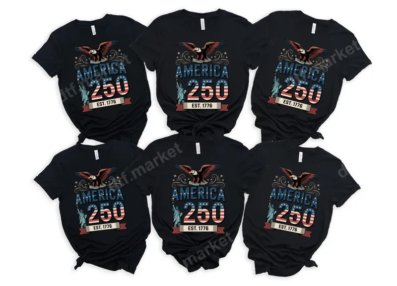 See allShow your American pride with this stunning America 250 Est 1776 DTF transfer. This patriotic design prominently features a majestic bald eagle soaring above the text "AMERICA 250," which is creatively rendered with American flag stars and stripes. To the left, the iconic Statue of Liberty stands tall, completing a powerful visual tribute to the nation's 250th anniversary. This direct to film transfer is perfect for creating unique apparel and is completely ready to press. This vibrant heat transfer is ideal for anyone celebrating American history, patriotism, or milestone anniversaries. It's a fantastic choice for Fourth of July gatherings, Memorial Day events, Veterans Day tributes, or as a thoughtful gift for history enthusiasts and proud Americans. Create custom apparel for family reunions, commemorative events, or simply to express your love for the USA with this impactful design. Applying this iron on transfer is straightforward and hassle-free, suitable for both professional heat press machines and household irons. It adheres beautifully to a wide range of fabrics, including cotton, polyester, and various blends. For best results with a heat press, apply at 300-325°F for 15 seconds with medium pressure. One of the greatest advantages is that there's no weeding required, saving you time and effort. Crafted with professional-grade DTF film, this heat press design ensures exceptional durability and a soft, smooth feel on any garment. The colors are incredibly vibrant, resistant to cracking and fading, ensuring your custom t-shirt transfer looks great wash after wash. Enjoy a high-quality finish that will make your apparel stand out.