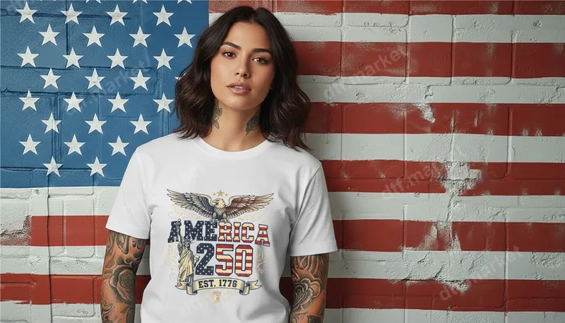 See allThis stunning patriotic DTF transfer commemorates "America 250 Est. 1776," a powerful design featuring a majestic bald eagle soaring above bold, star-spangled text. Flanked by the iconic Statue of Liberty and the Liberty Bell, this design is rich with American heritage and gold scrollwork details. It's a ready to press transfer, ensuring you can quickly and easily customize your favorite apparel with a vibrant, detailed image that celebrates the nation's history. Perfect for proud Americans, history buffs, and anyone celebrating national holidays, this heat transfer is ideal for events like the 4th of July, Memorial Day, Veterans Day, or the upcoming 250th anniversary of the USA. It makes an excellent gift for veterans, service members, or anyone who cherishes American values and history. Showcase your patriotism with this unique shirt design on any occasion. Applying this iron on transfer is simple and efficient. It works seamlessly on a wide range of fabrics including cotton, polyester, and their blends. For best results, use a heat press at 300-325°F for 15 seconds with medium pressure. This professional heat press design requires no weeding, saving you time and effort. While a heat press is recommended, it can also be applied with a high-quality household iron. Crafted using premium DTF film and strong adhesive, this apparel transfer ensures vibrant colors and crisp details that truly pop. The transfers are designed to be durable, crack-resistant, and offer a soft, smooth feel on your garment. Enjoy a professional-grade finish that withstands countless washes, keeping your patriotic apparel looking fantastic for years to come.