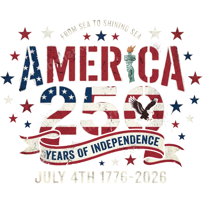 See allCelebrate a monumental milestone with our exclusive America 250 Years of Independence DTF transfer. This patriotic design features bold, distressed lettering spelling "AMERICA 250 YEARS OF INDEPENDENCE" with an iconic bald eagle, the Statue of Liberty's torch, and a showering of red, white, and blue stars. Emblazoned with "FROM SEA TO SHINING SEA" and the dates "JULY 4TH 1776-2026," this ready to press design captures the spirit of freedom and history in a vintage-inspired aesthetic, making it an ideal choice for any true patriot. This commemorative design is perfect for anyone looking to showcase their American pride, especially for the upcoming 250th anniversary of independence. It's a fantastic choice for Fourth of July celebrations, Memorial Day gatherings, Veterans Day tributes, or as a meaningful gift for history buffs, veterans, or military families. Easily create custom apparel for family events, patriotic parades, or simply to wear your pride every day with this unique heat transfer. Our premium DTF transfers are incredibly versatile, applying flawlessly to a wide range of fabrics, including 100% cotton, polyester, and various blends. Achieve professional results using a heat press set between 300-325°F for 15 seconds with medium pressure. For those without a heat press, a household iron can also be used with careful application. Forget about tedious weeding or complex layering; these iron on transfers are simple to apply, saving you time and effort. Crafted using high-quality DTF film and vibrant, durable inks, this heat press design ensures your finished product will be eye-catching and long-lasting. The transfer is designed to be crack-resistant, wash-stable, and incredibly soft to the touch, seamlessly integrating with the garment. Enjoy rich, vivid colors that stand up to repeated washing, making your custom transfer apparel a cherished item for years to come.