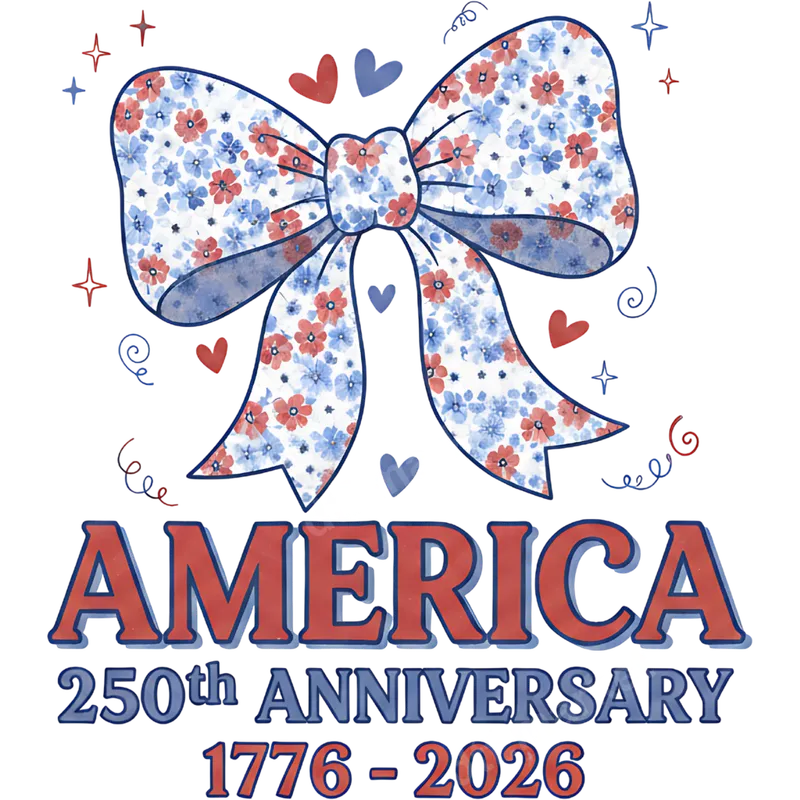 America 250th Anniversary Floral Bow DTF Transfer 1776-2026