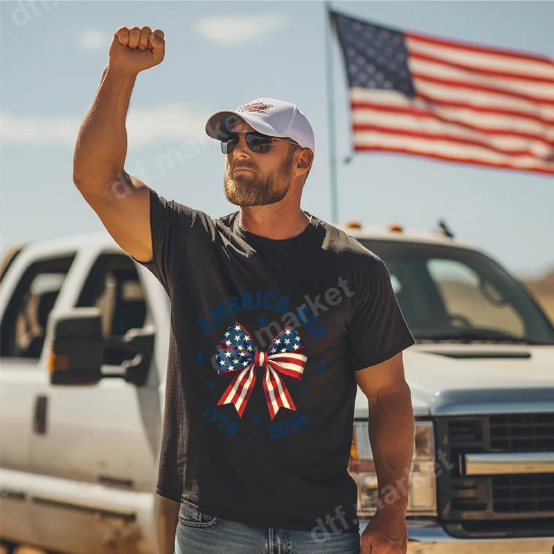 America 250th Patriotic Flag Bow DTF Transfer | 1776-2026 Ready to Press