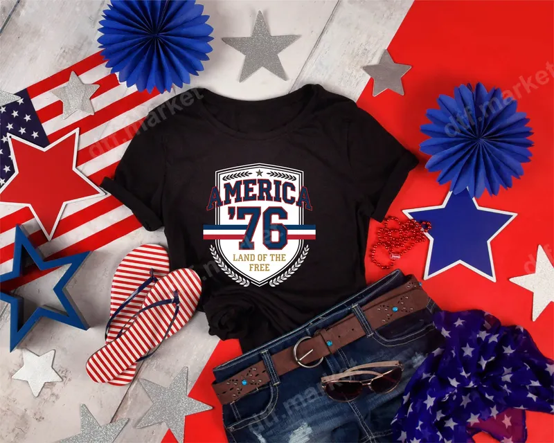 See allThis vibrant America '76 Land of the Free DTF transfer captures timeless patriotism with a vintage-inspired shield emblem. Featuring bold "AMERICA '76" lettering in classic red, white, and blue, underscored by the inspiring phrase "LAND OF THE FREE," this ready to press design evokes a strong sense of national pride. The design is framed with subtle laurel details, giving it an authentic, heritage feel perfect for celebrating American spirit. This patriotic heat transfer is ideal for anyone looking to showcase their love for the USA. It's a fantastic choice for Fourth of July celebrations, Memorial Day events, Labor Day barbecues, or simply as everyday wear for proud Americans. Great for veterans, military families, or as a thoughtful gift for history enthusiasts. Easily create custom t-shirts, tank tops, or even tote bags to wear to parades, gatherings, or community events. Our high-quality apparel transfer ensures easy application on a wide range of materials, including cotton, polyester, and various blends. Achieve professional results using a heat press set at 300-325°F for 15 seconds with medium pressure, followed by a cool peel. For home crafters, a household iron can also be used with care. No tedious weeding is required, making this an incredibly convenient iron on design for quick customization projects. Experience superior quality with every print. These direct to film transfers boast vibrant colors that pop, excellent wash durability, and resistance to cracking or peeling, ensuring your designs look great for years to come. Each heat press design is printed on professional-grade DTF film with a strong adhesive, resulting in a soft, flexible finish that integrates seamlessly with your chosen garment.