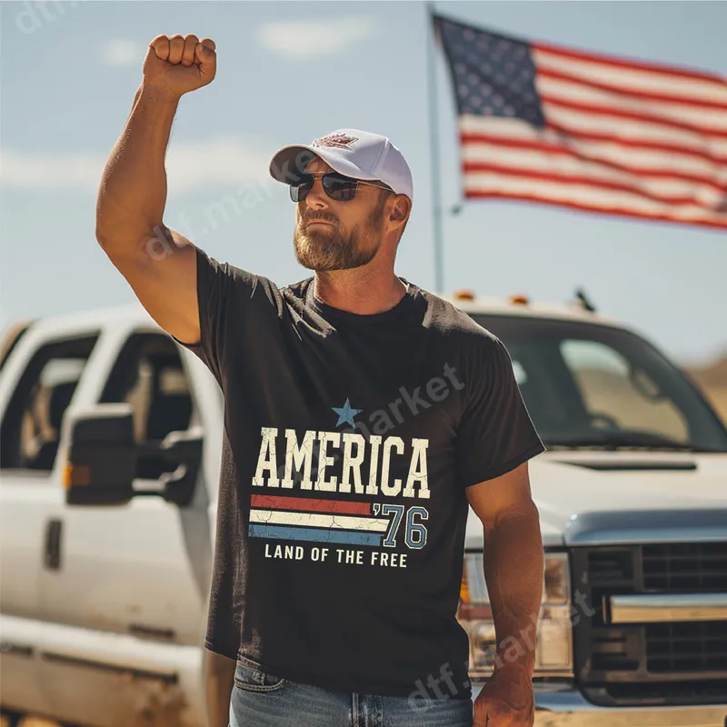 America '76 Land of the Free DTF Transfer | Patriotic Vintage Design