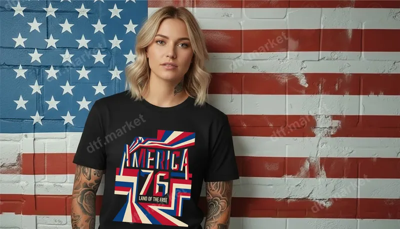 See allEmbrace a timeless patriotic vibe with our 'America 76 Land of the Free' DTF transfer. This stunning design features bold, retro-inspired lettering and classic American colors of red, white, blue, and cream, all arranged in a dynamic, striped layout. It prominently displays 'AMERICA 76' to commemorate the nation's founding, alongside the powerful phrase 'LAND OF THE FREE'. This premium direct to film transfer is perfect for anyone looking to show their pride with a vintage flair, and it comes completely ready to press onto your favorite garments. This unique heat press transfer is ideal for patriots, history enthusiasts, and anyone celebrating American heritage. It’s perfect for national holidays like the 4th of July, Memorial Day, or Veterans Day. Outfit your entire family for parades, BBQs, or political rallies. It also makes an excellent gift for veterans, service members, or anyone who cherishes the spirit of 1776 and the principles of freedom. Create custom apparel that stands out and truly expresses your pride. Applying this high-quality iron on transfer is incredibly simple, whether you use a professional heat press or a home iron. For best results, a heat press at 300-325°F for 15 seconds with medium pressure is recommended. It adheres beautifully to a wide range of materials, including cotton, polyester, and cotton/poly blends, making it a versatile iron on decal for various projects. Forget the hassle of weeding; this heat press ready design is straightforward and efficient. Our professional-grade DTF transfer film ensures vibrant, long-lasting results that are crack-resistant and soft to the touch, unlike traditional vinyl transfer options. This t-shirt transfer is designed for exceptional durability, maintaining its crisp colors and integrity even after multiple washes. Give your apparel a professional, custom look with an apparel transfer that feels as good as it looks. Experience superior quality and express your American spirit with confidence.