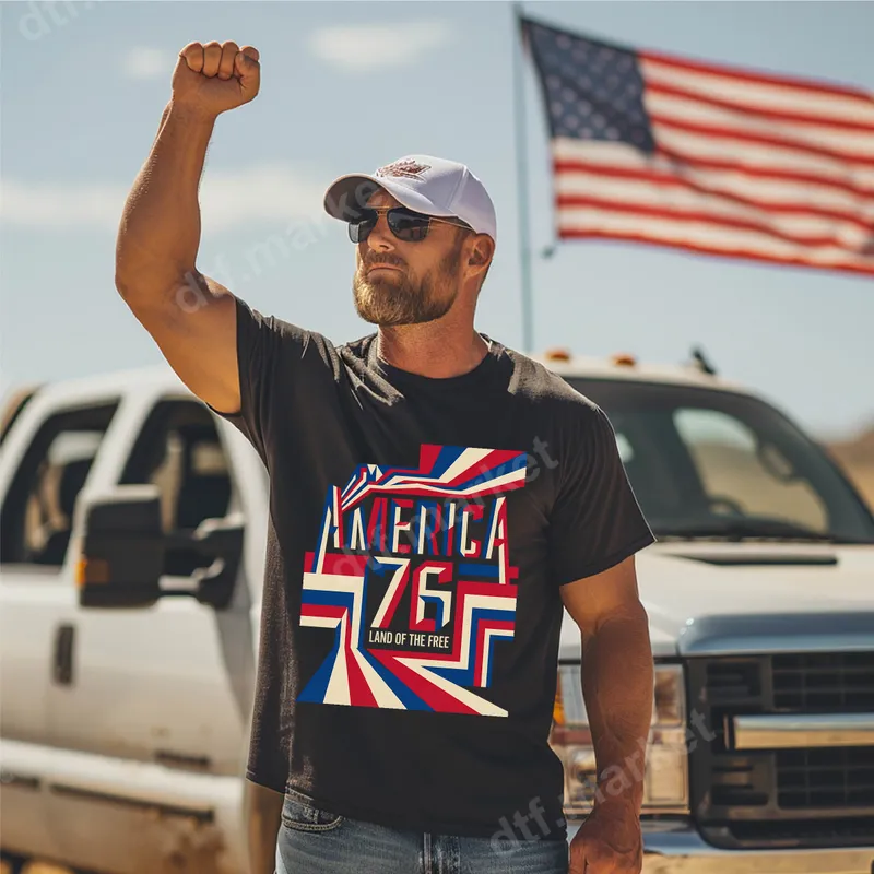 See allEmbrace the spirit of independence with our striking 'America '76 Land of the Free' DTF transfer. This vibrant design features bold, geometric red, white, and blue elements that evoke classic Americana, highlighting the iconic year of America's founding. It's a high-quality, ready to press transfer that brings a powerful patriotic statement to any garment, perfect for celebrating freedom and heritage. This powerful heat transfer is ideal for patriots, veterans, active military personnel, and anyone who cherishes American history and values. It’s perfect for national holidays like the 4th of July, Memorial Day, and Veteran's Day, or simply as an everyday expression of national pride. Create custom gifts for family and friends, or unique merchandise for events and rallies, easily applying this heat press design to various items. Applying this transfer is quick and easy. Simply use a heat press at 300-325°F for 15 seconds with medium pressure. Our versatile heat press ready design adheres beautifully to cotton, polyester, and most fabric blends. Unlike traditional vinyl, there's no weeding required, making your customization projects effortless. For best results, allow the transfer to cool completely before peeling. Crafted with professional-grade DTF film and strong adhesive, this apparel transfer ensures vibrant, crack-resistant colors and a soft, comfortable feel. Your finished garments will stand up to countless washes while maintaining their stunning visual appeal. This durable t-shirt transfer is a fantastic way to showcase your love for the USA with a design that lasts.