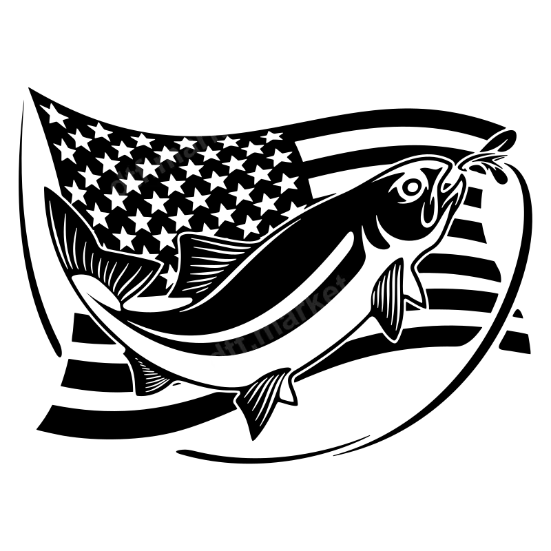 American Flag Patriotic Fishing DTF Transfer | Ready to Press Fish Design