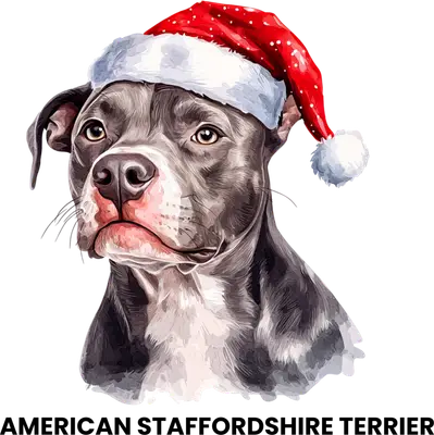 American Staffordshire Terrier Santa Hat DTF Transfer | Christmas Dog
