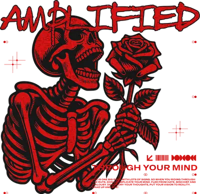 See allThis striking DTF transfer features a screaming red skeleton clutching a solitary rose, set against a distressed, grunge background with the bold text "AMPLIFIED" and "THROUGH YOUR MIND." The design emanates an edgy, rebellious, and darkly romantic vibe, blending gothic aesthetics with a raw streetwear feel. It's a ready to press design that speaks to those who embrace individualism and self-expression, offering a powerful visual statement that is both artistic and thought-provoking. This unique design is perfect for anyone looking to make a statement. It appeals strongly to subcultures like goth, punk, emo, and alternative fashion enthusiasts, as well as motorcycle clubs and tattoo art lovers. It's an ideal iron on transfer for crafting personalized gifts for birthdays, Halloween, or simply to upgrade everyday apparel. Small t-shirt businesses, Etsy sellers, and custom apparel creators will find this heat transfer design an excellent addition to their inventory, offering a popular aesthetic for their customers. Applying this heat press transfer is incredibly easy and versatile. It adheres beautifully to a wide range of materials, including cotton, polyester, cotton-poly blends, and even nylon, making it suitable for almost any garment. Simply use a heat press at 300-325°F for 15 seconds with medium pressure, or a household iron with firm, even pressure. There's no tedious weeding required – just peel and press! Create stunning custom t-shirts, hoodies, sweatshirts, tote bags, pillow covers, and denim jackets. For best results and lasting durability, wash garments inside out and tumble dry low. Our ready to press transfer ensures exceptional quality, featuring vibrant, full-color printing with incredibly fine detail that brings the design to life. The result is a crack-resistant image that feels soft to the touch, avoiding the heavy, stiff feel often associated with vinyl transfers. Each direct to film transfer is meticulously printed on premium DTF film, engineered with a strong adhesive backing to guarantee professional-grade results and long-lasting wear, project after project.