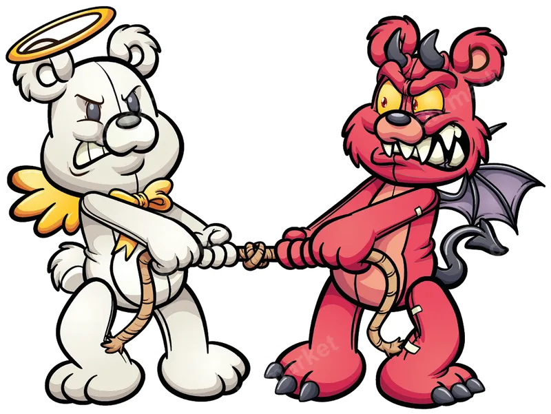 Angel Devil Bear Tug-of-War DTF Transfer | Good vs Evil