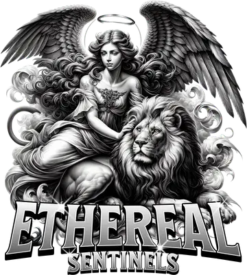 Angel & Lion Guardian DTF Transfer | Ethereal Sentinels Design