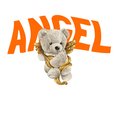 ANGEL Teddy Bear Streetwear DTF Transfer | Cute Gold Wings Design