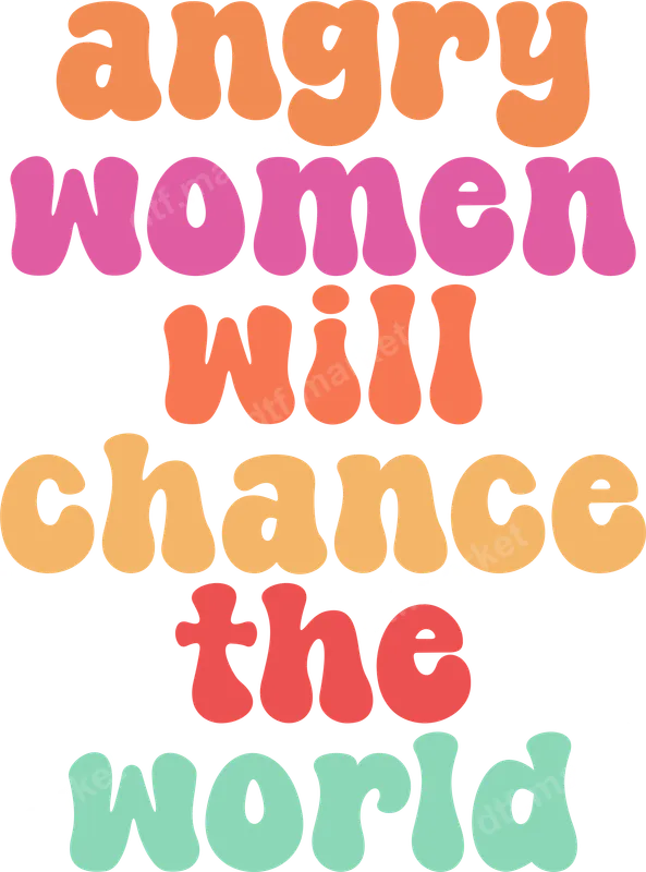 See allThis vibrant DTF transfer showcases the powerful statement "Angry Women Will Change The World" in a playful, multi-colored retro bubble font. The design exudes confidence and a call to action, perfect for making a bold statement. As a ready to press transfer, it makes customizing your apparel easy, bringing this empowering message to life with bright, eye-catching hues of orange, pink, peach, red, and mint green. This heat transfer is ideal for feminists, activists, and anyone who believes in the power of women to drive social change. It's perfect for women's marches, protest events, rallies, or simply everyday wear to express your convictions. It also makes a fantastic gift for friends, sisters, or mothers who champion equality and empowerment. Show your support for women's rights and inspire conversations wherever you go with this impactful apparel transfer. Applying this heat press design is straightforward. Our DTF transfers work exceptionally well on various materials, including cotton, polyester, and fabric blends. For best results, use a heat press at 300-325°F for 15 seconds with medium pressure. While a heat press is recommended for professional outcomes, you can also achieve great results with a household iron. There's absolutely no weeding required, saving you time and effort compared to traditional vinyl transfers. Expect a high-quality finished product with our direct to film transfers. The vibrant colors will not fade, crack, or peel, ensuring your message stays bold wash after wash. Each iron on transfer is printed on professional-grade DTF film, providing a soft-to-touch feel that integrates seamlessly into the fabric, unlike bulky vinyl. The strong adhesive ensures a long-lasting bond, making your custom transfer durable and reliable for everyday wear.