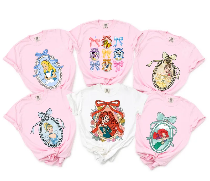 Animated Princess & Classic Character Bows DTF Transfer | Ready to Press Heat Transfer