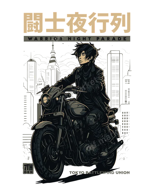 Anime Biker Warrior Night Parade DTF Transfer Urban Streetwear Design